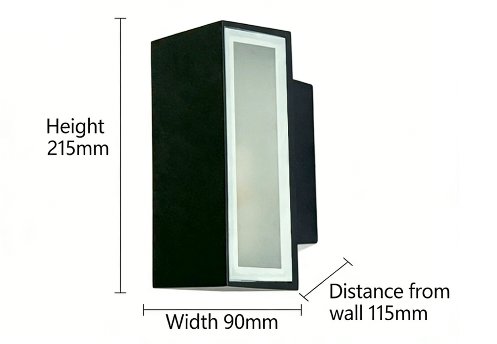 - Installation guideMake a bold statement at your entrance with this sleek black rectangular LED wall light. Built from die-cast aluminium with IP65 weatherproof rating — perfect for gardens, patios, hotels and outdoor corridors.✅ IP65 waterproof — fully weatherproof for outdoor use